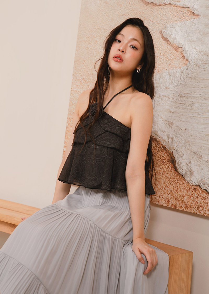 *Features a tier-ed halter babydoll fit, with detachable safety rose pin and an elastic band on the back
