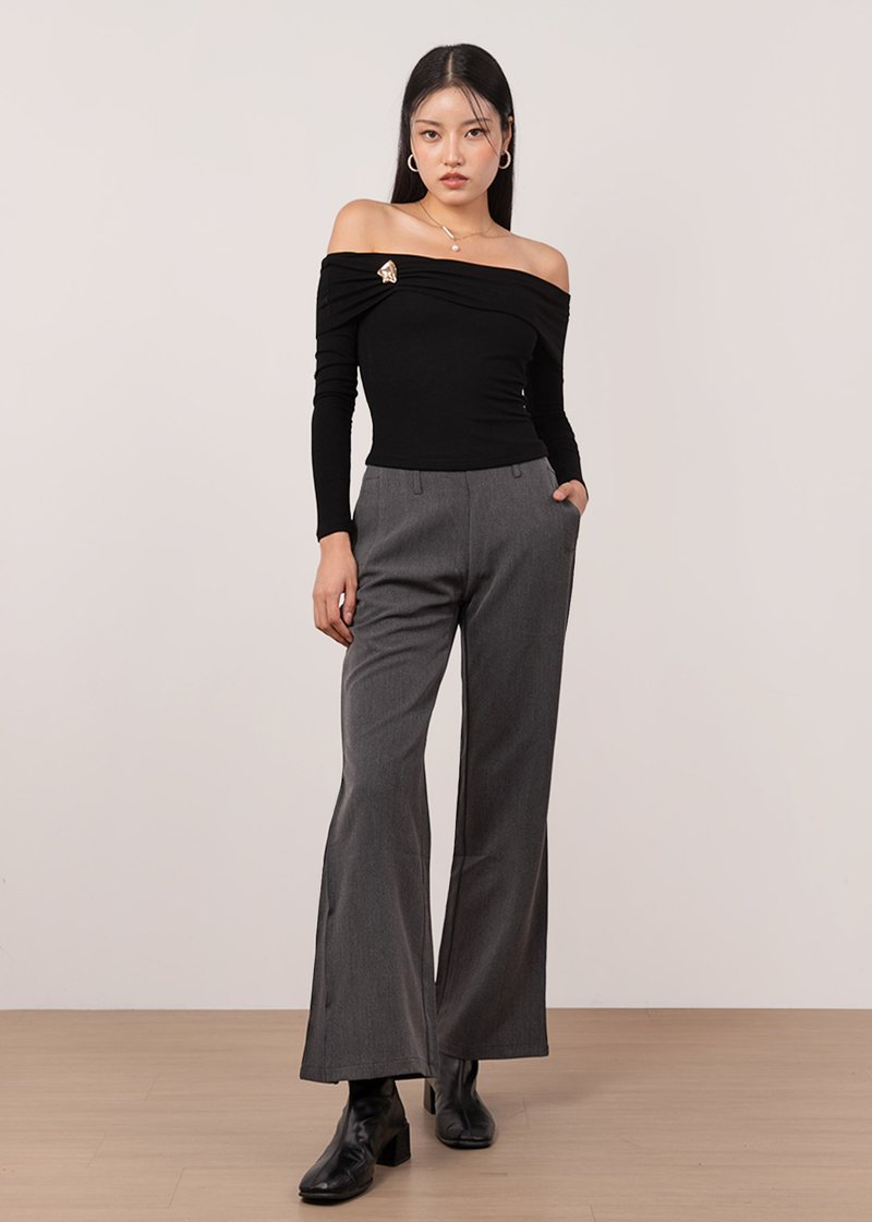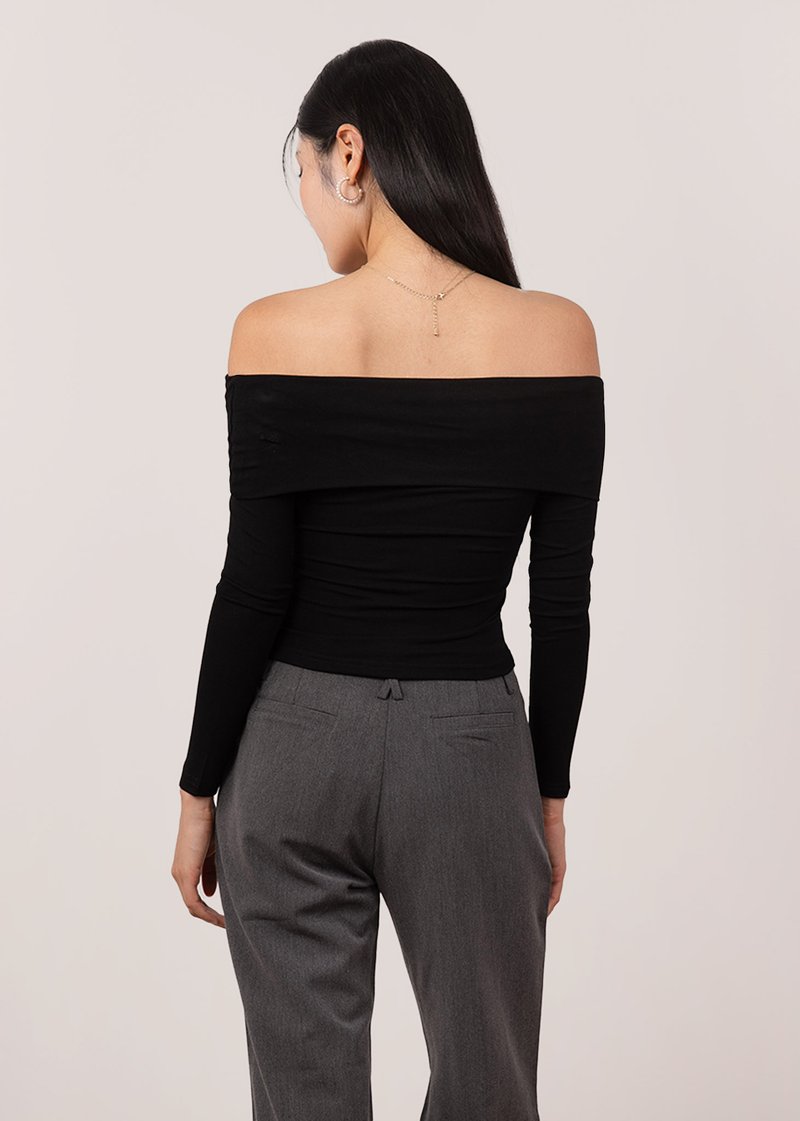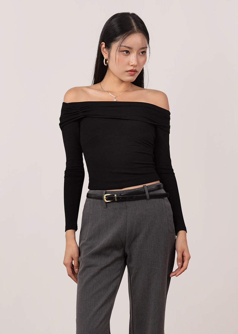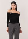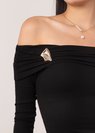 *Features a regular length with off shoulder ruched neckline and comes with a removable safety pin gold irregular button to accessorise with the look