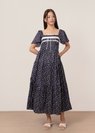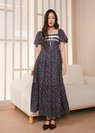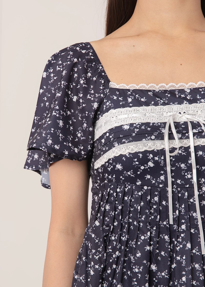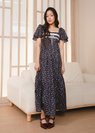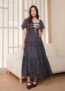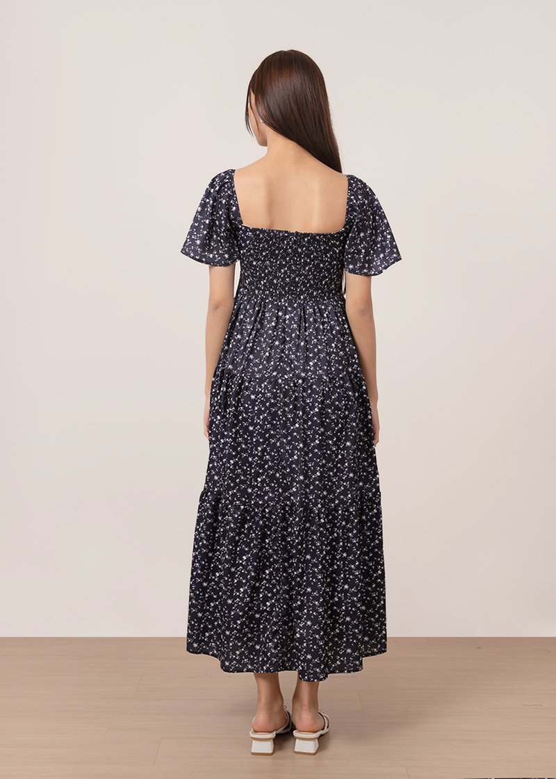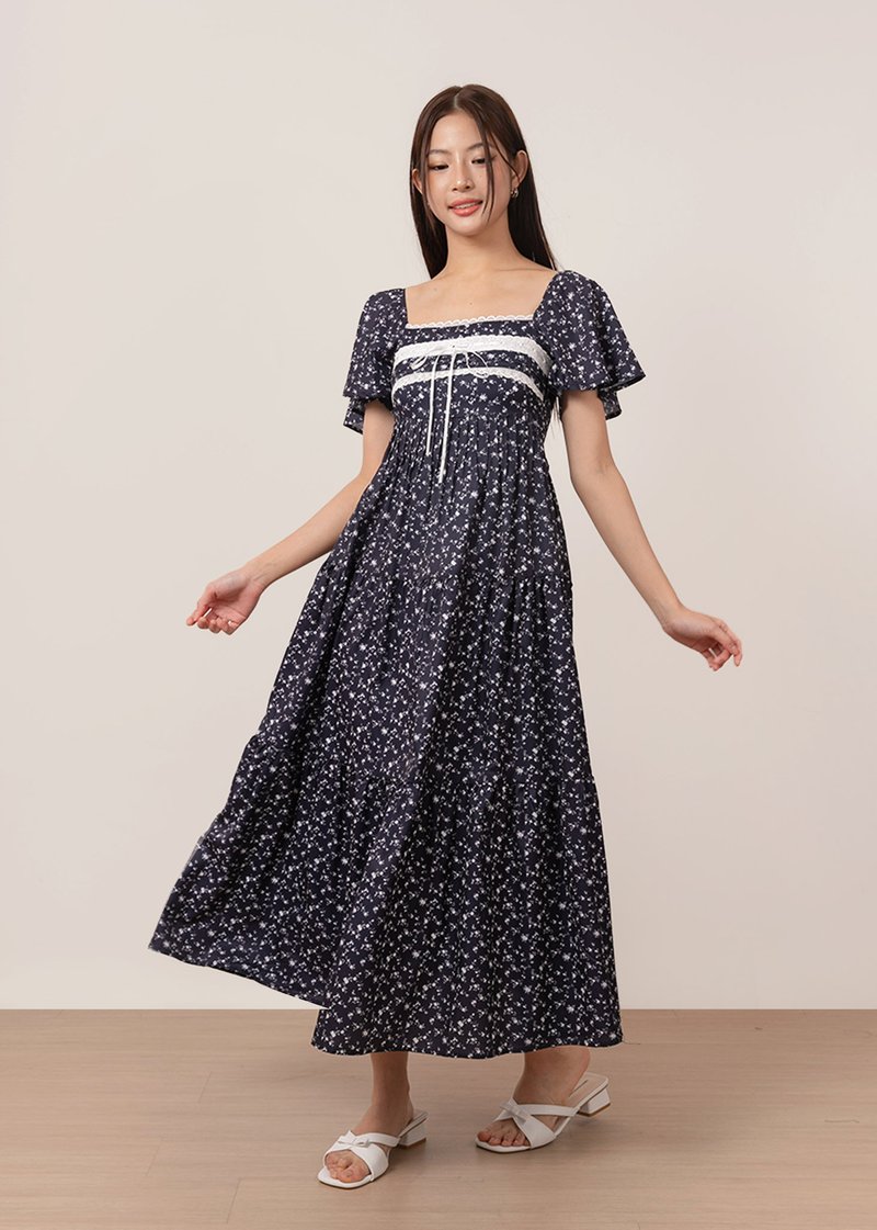 Sugarplum Flutter Sleeve Maxi Dress in Navy x White Floral Prints