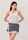 *Features a 2 piece lace design with braided halter straps, a knotted detail in the middle with inner lace cami top with adjustable straps
