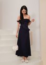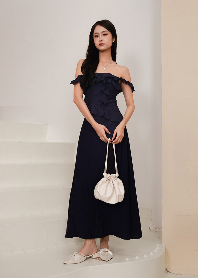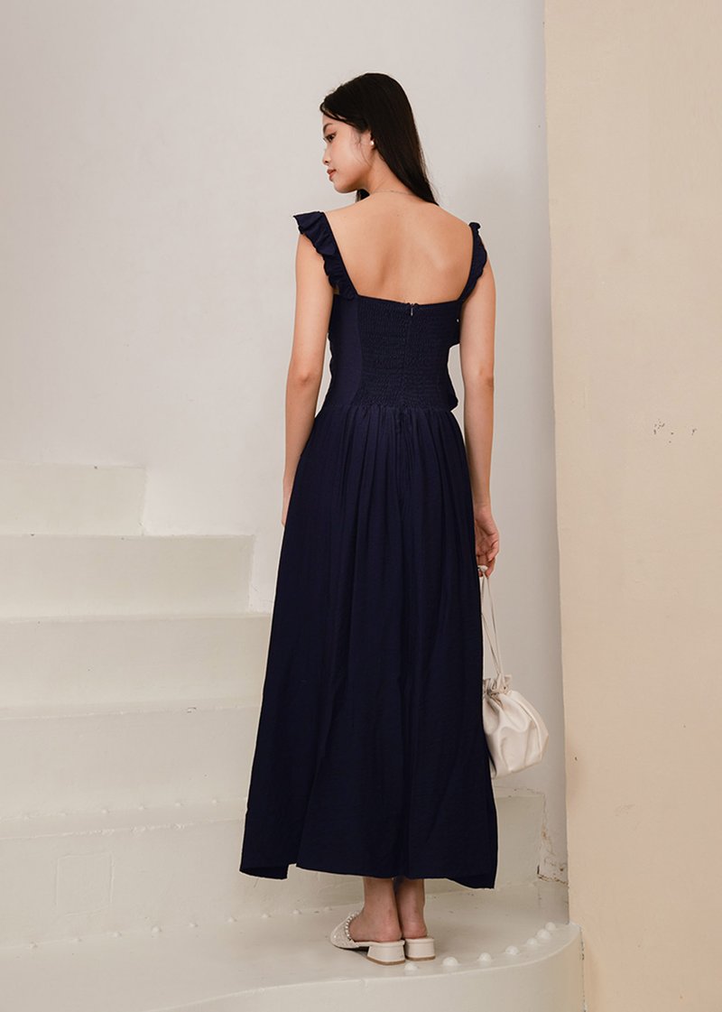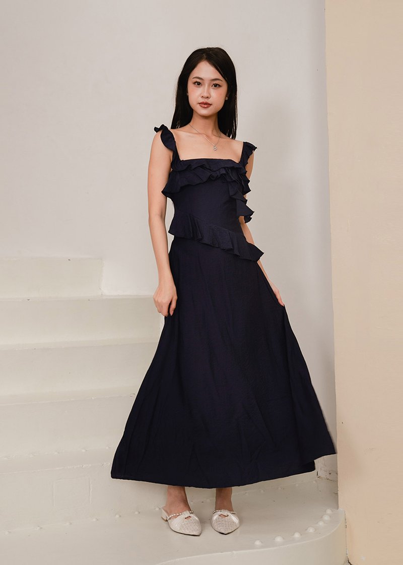 Valencia Midi Ruffles Dress in Navy