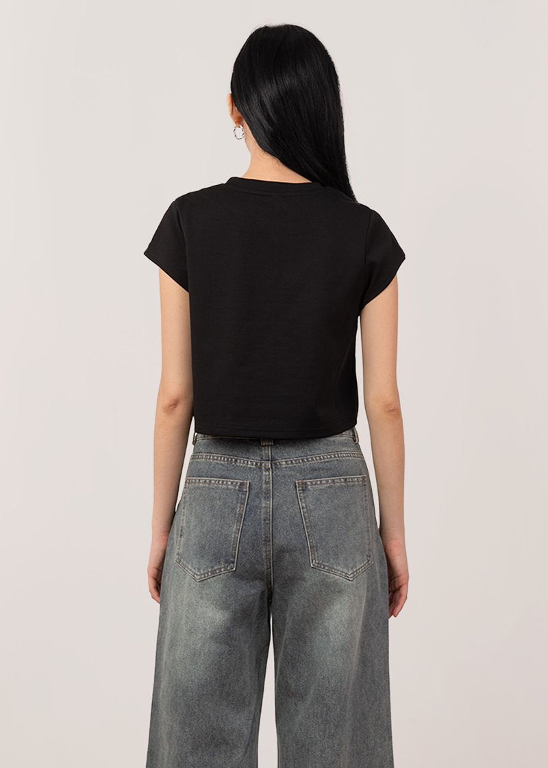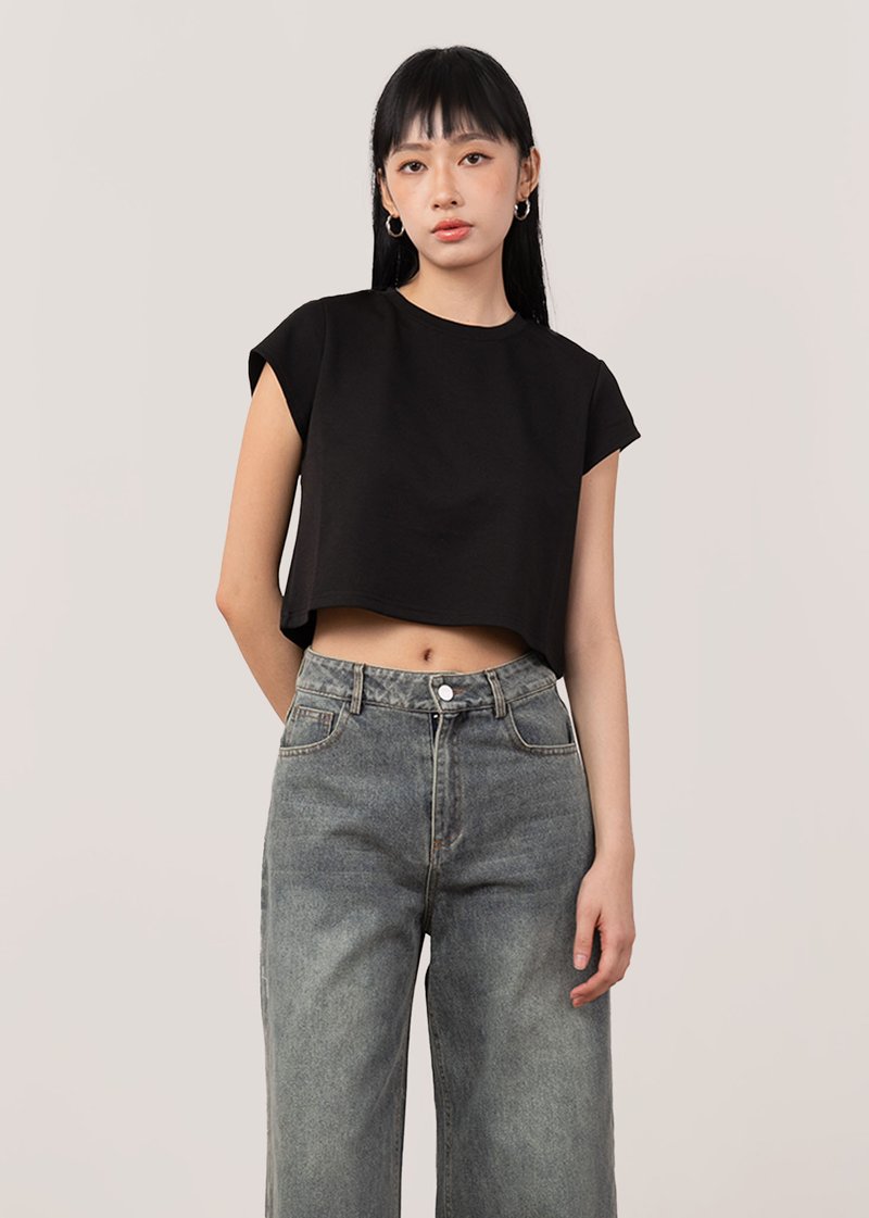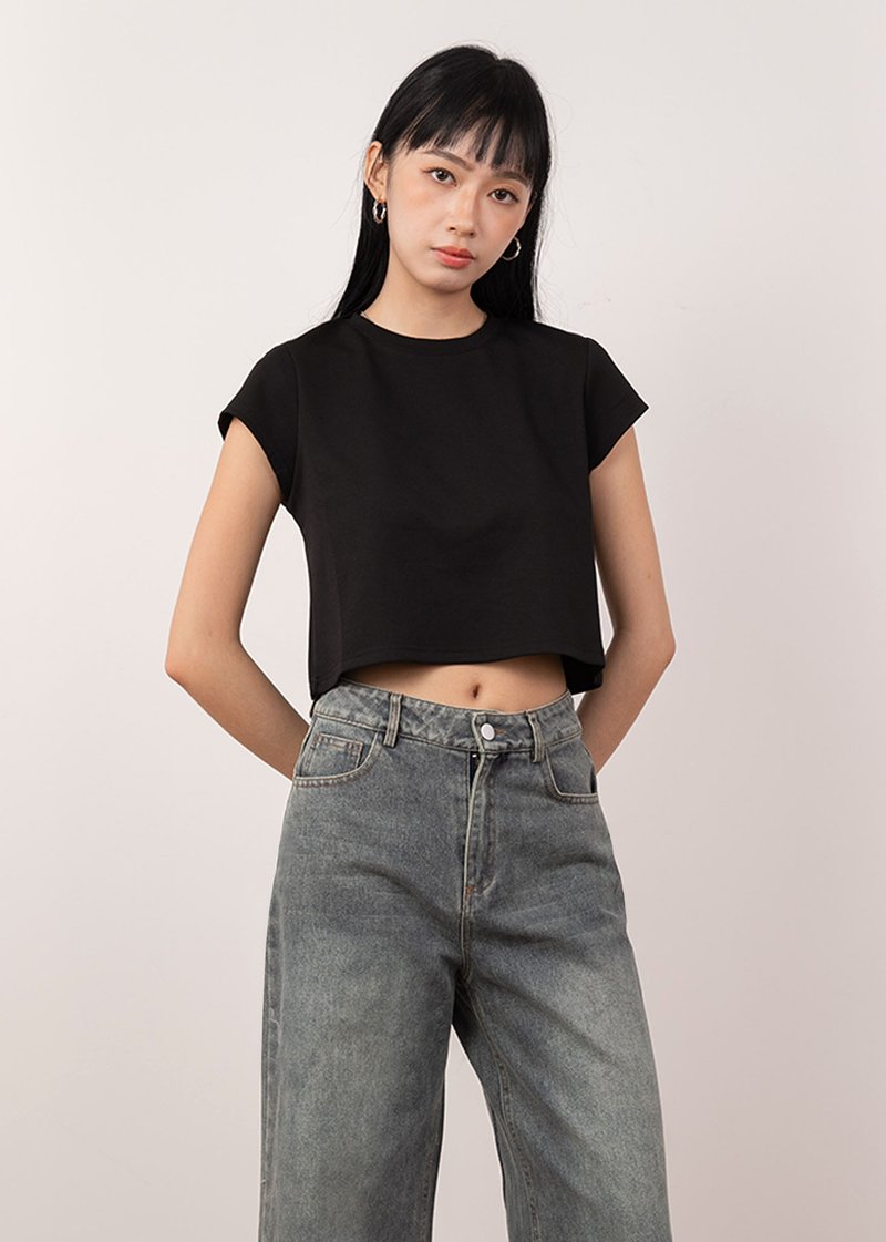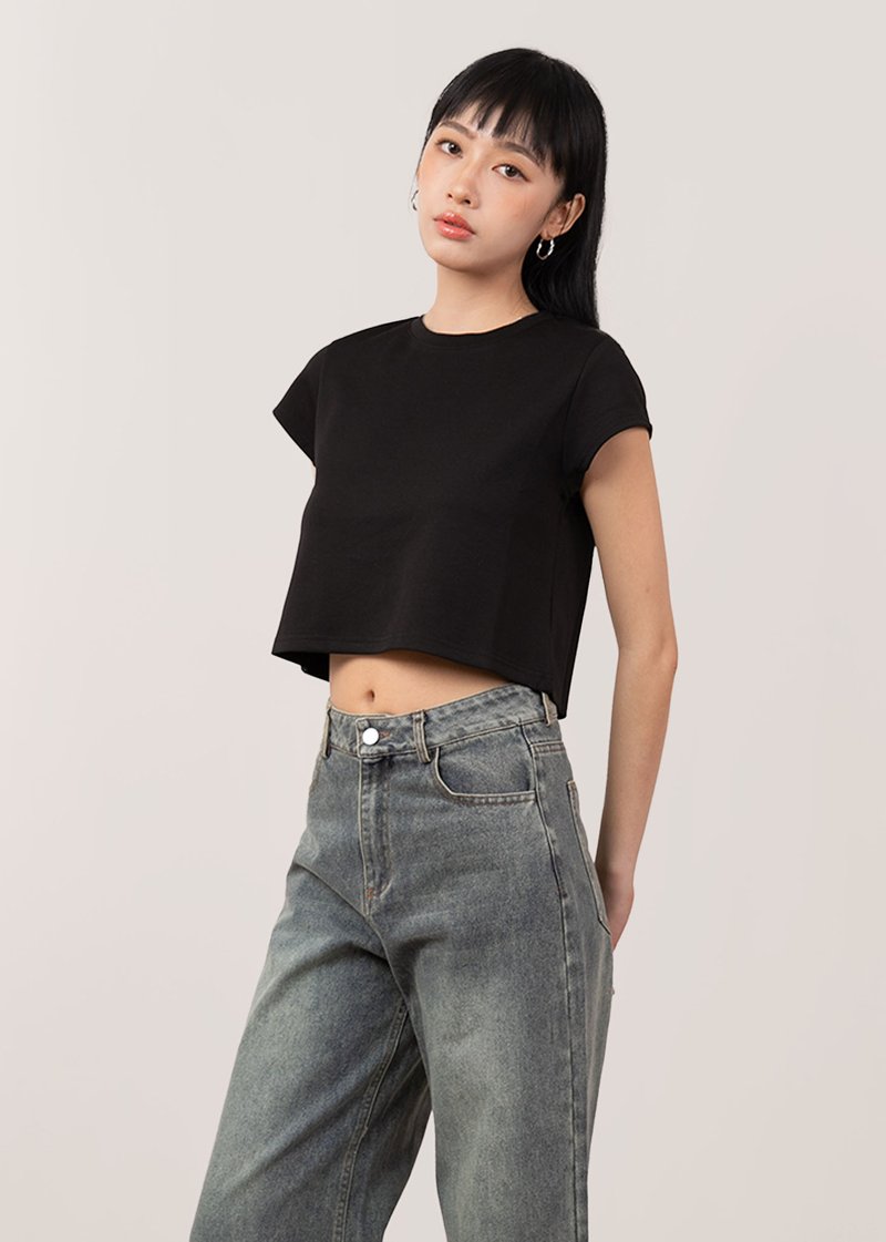 *Features boxy fit with a high round neck line, meant to be worn slightly oversized