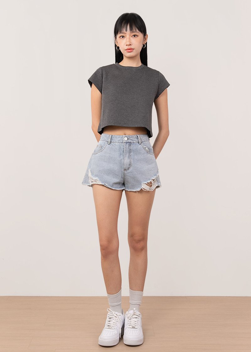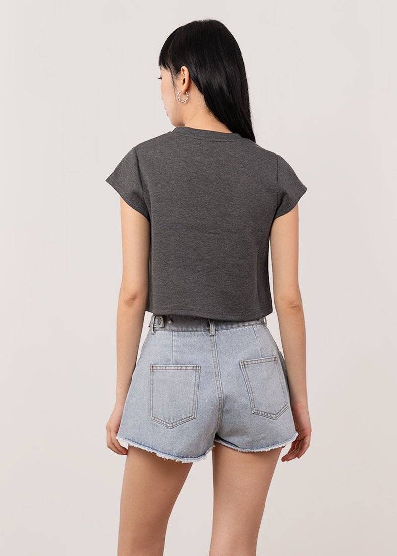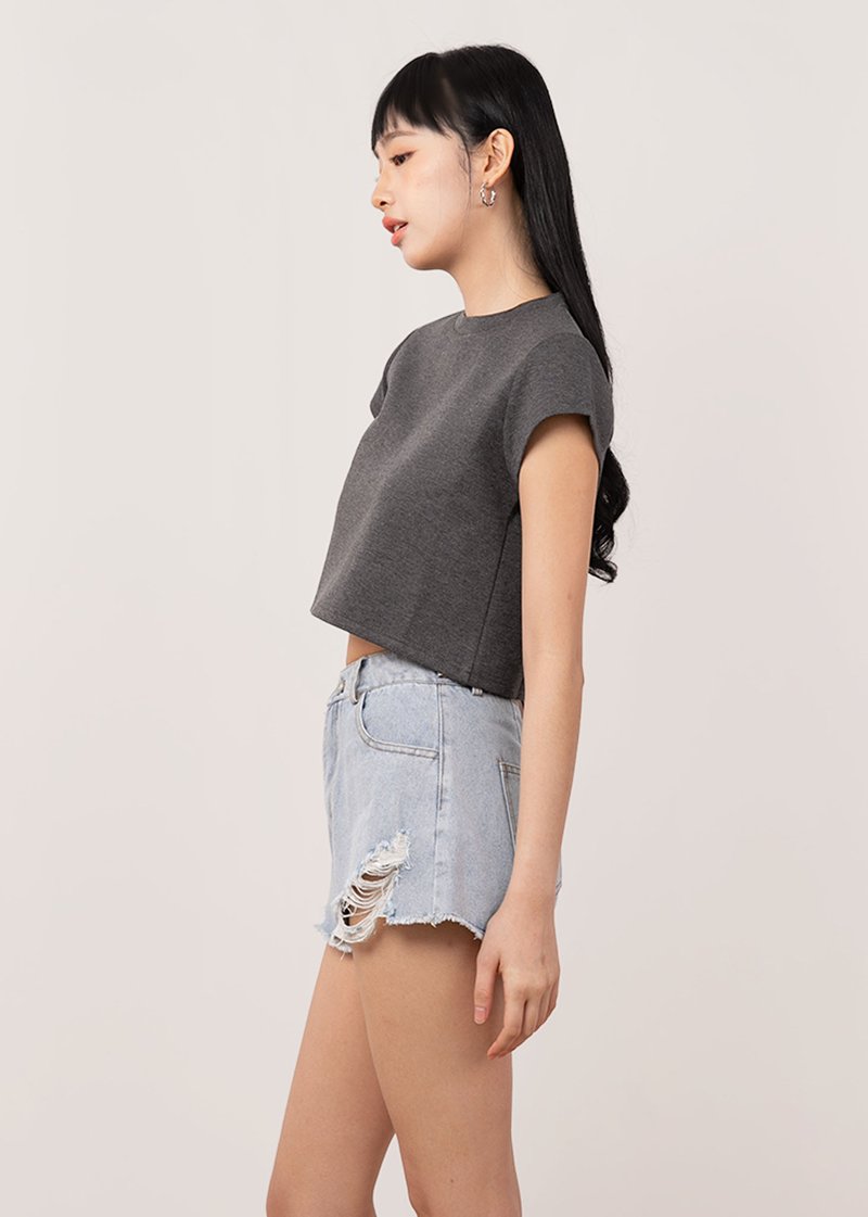 *Features boxy fit with a high round neck line, meant to be worn slightly oversized