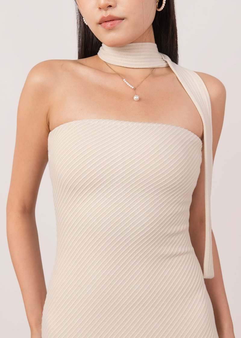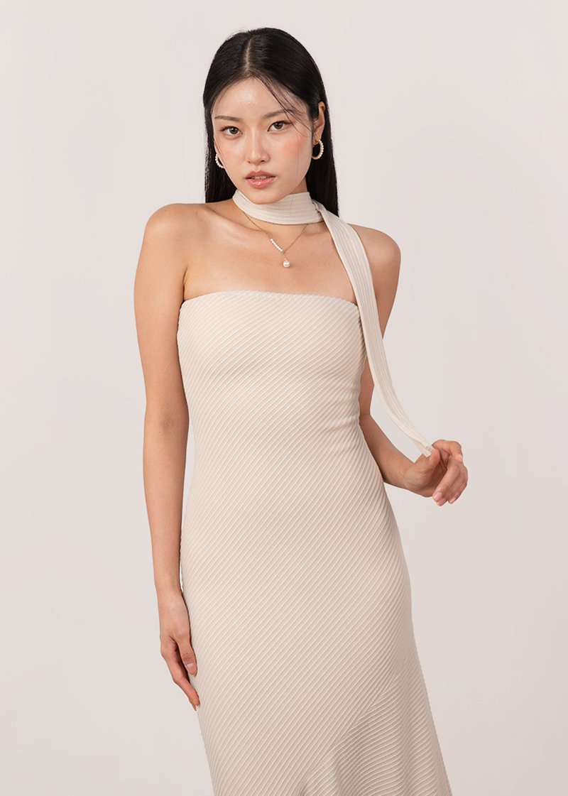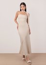 *Features a bodycon fit with a dropwaist hem, thick band on the bust, removable adjustable straps and a separate sash for styling