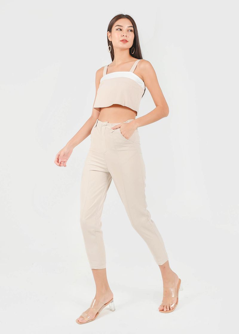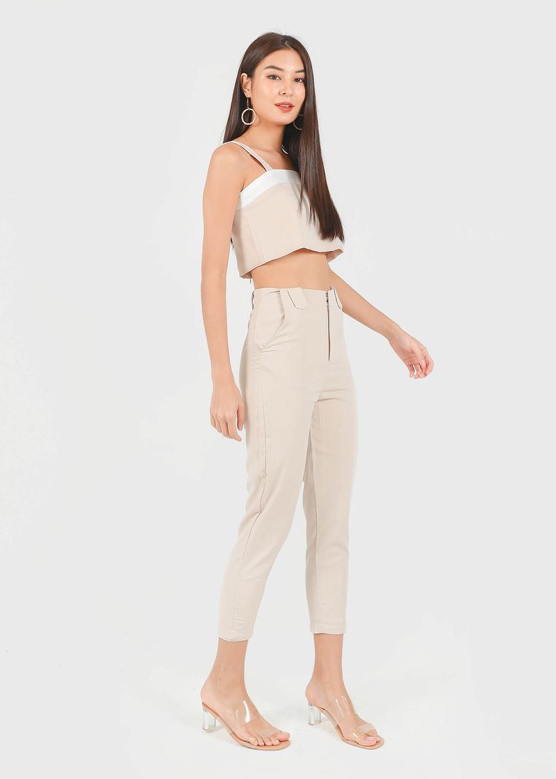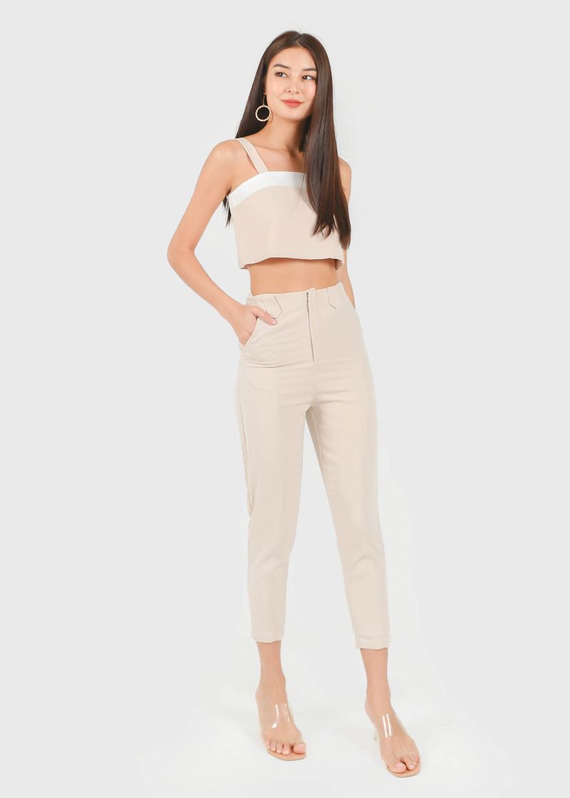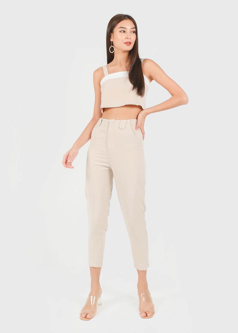 Shelia Buckle Tapered Panel Pants in Sand #6stylexclusive