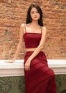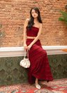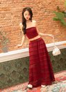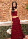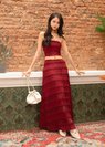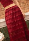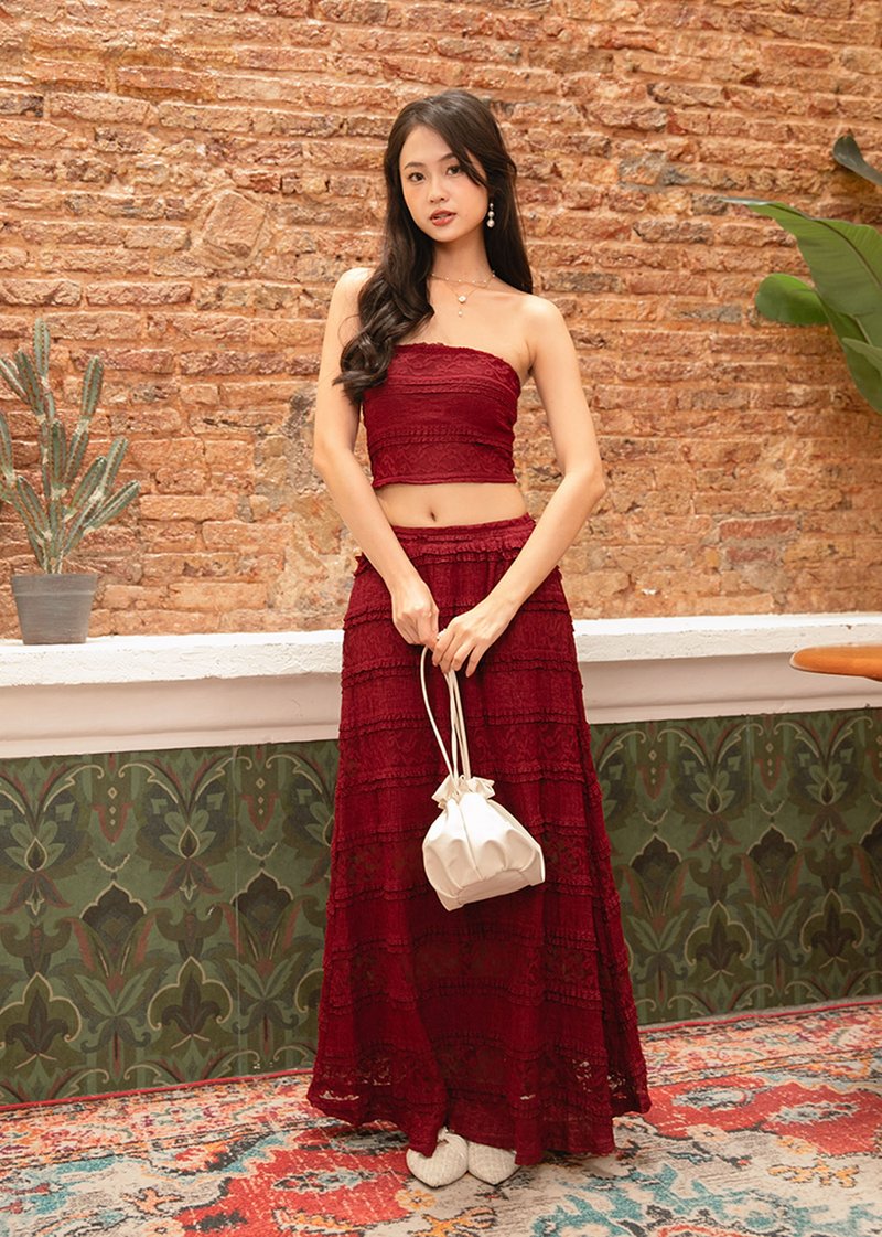 Soft Blossom Lace Maxi Skirt in Dark Red