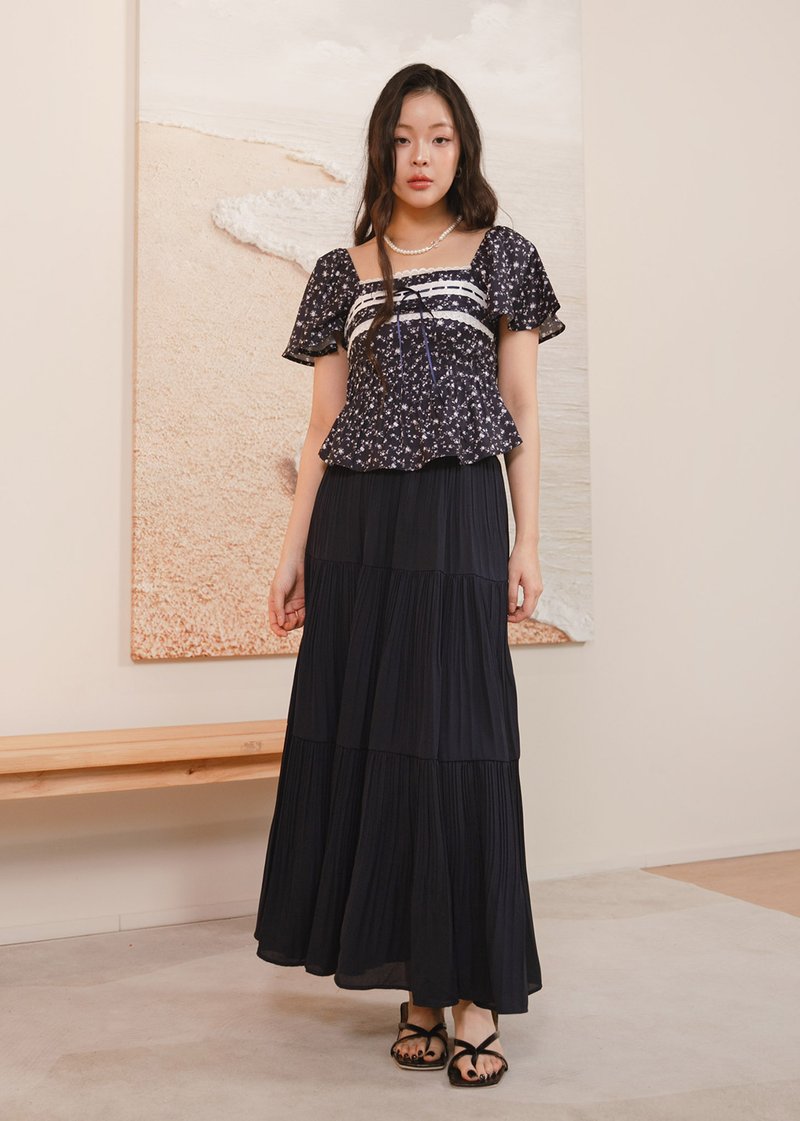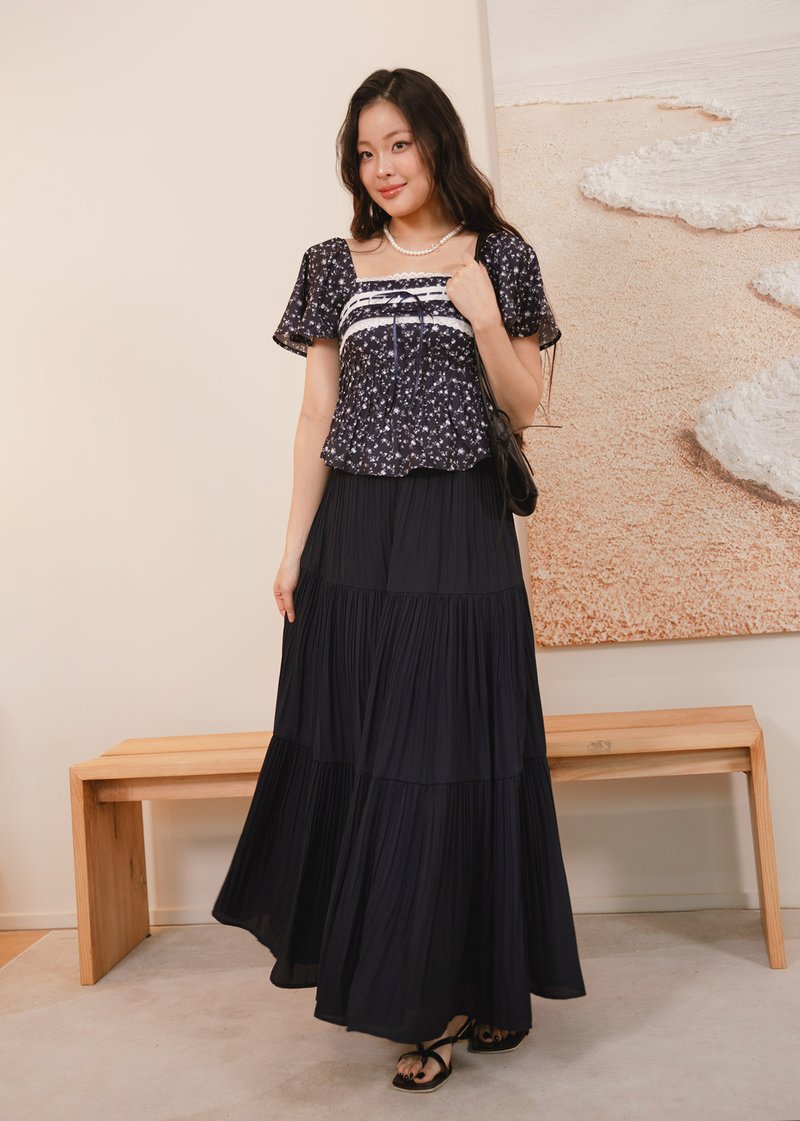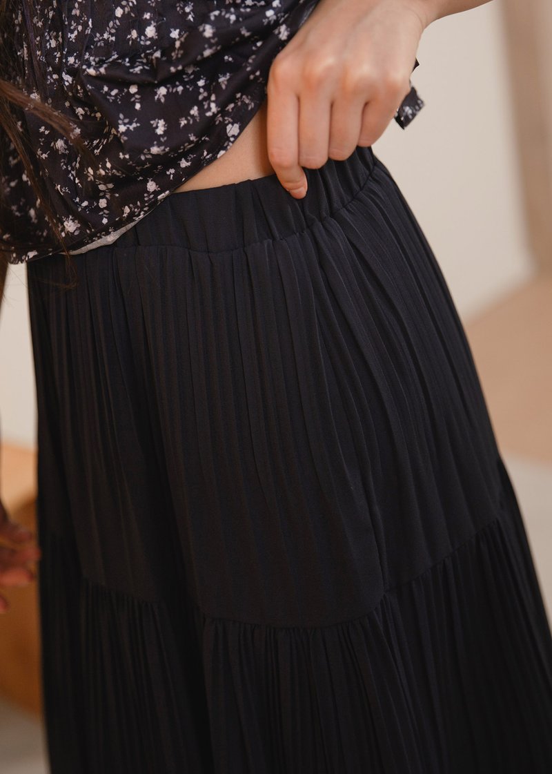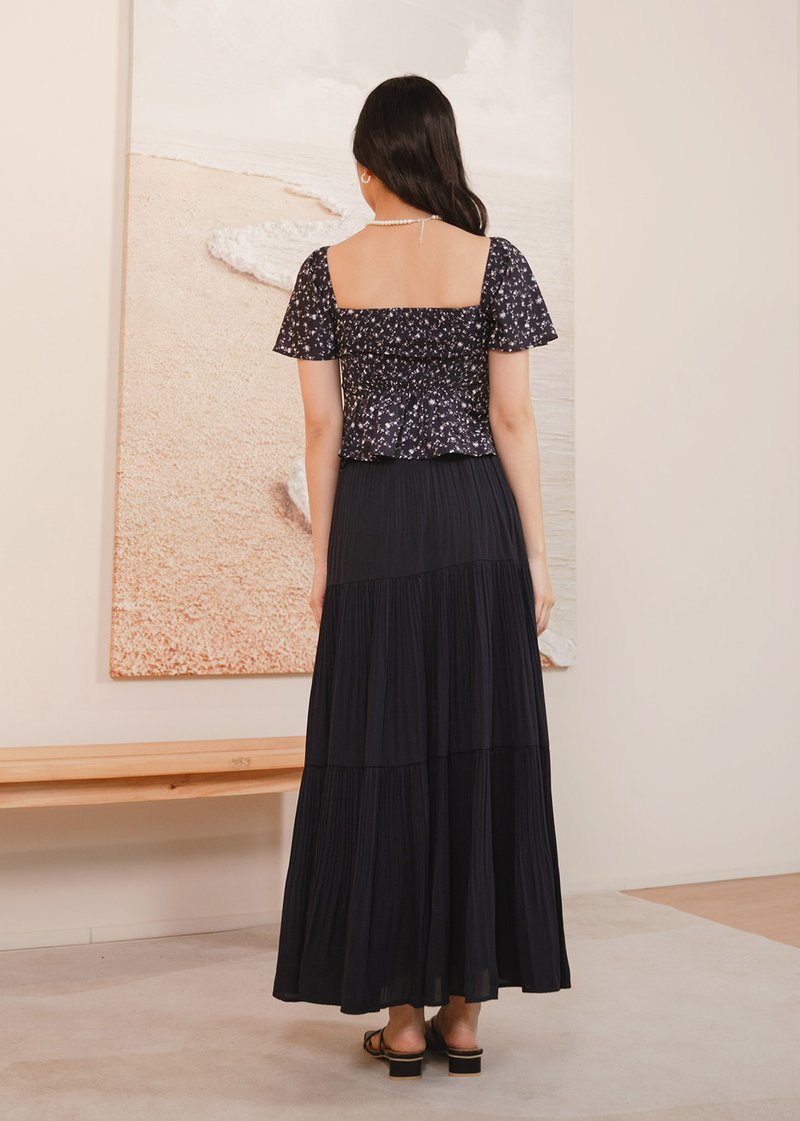 Cloudora Pleated Midi Skirt in Midnight