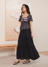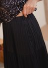 *Features a midi length skirt with an elastic waistband (stretchable up to 2 inches comfortably), and features a pleated tiered design down
