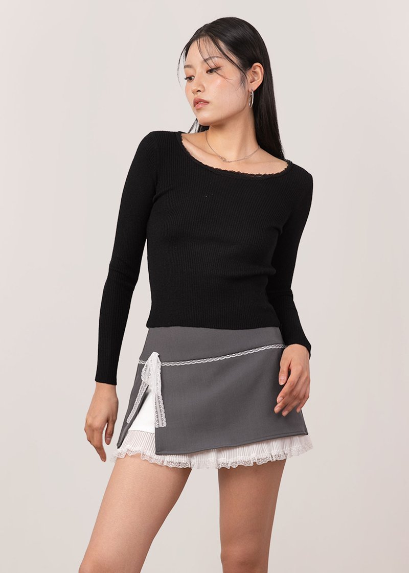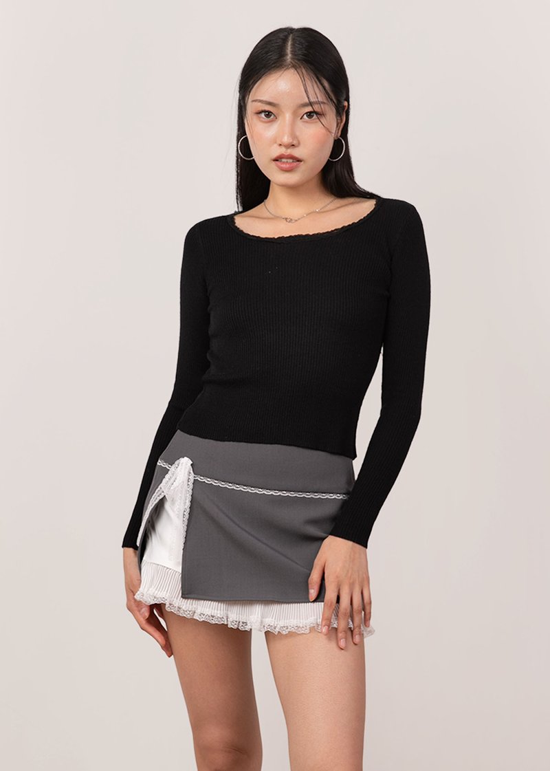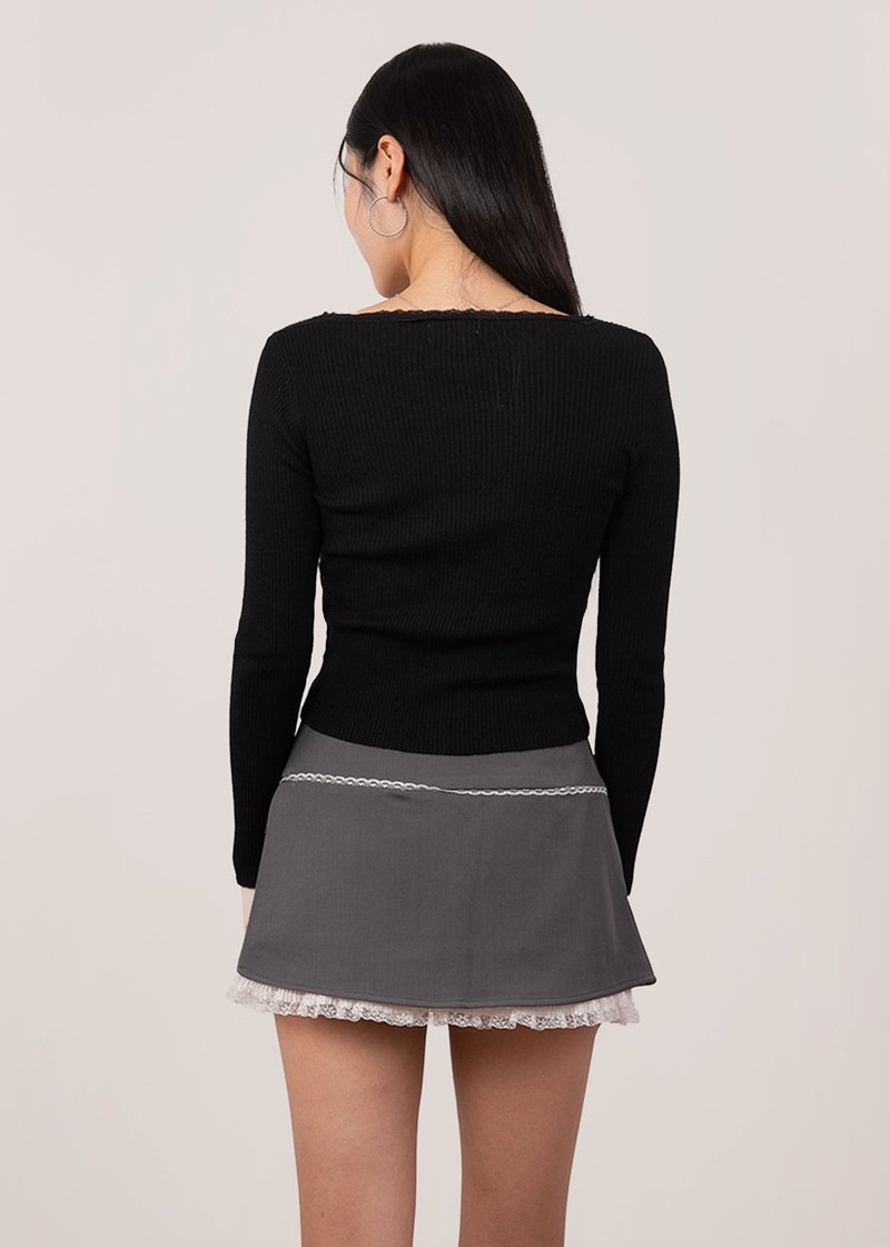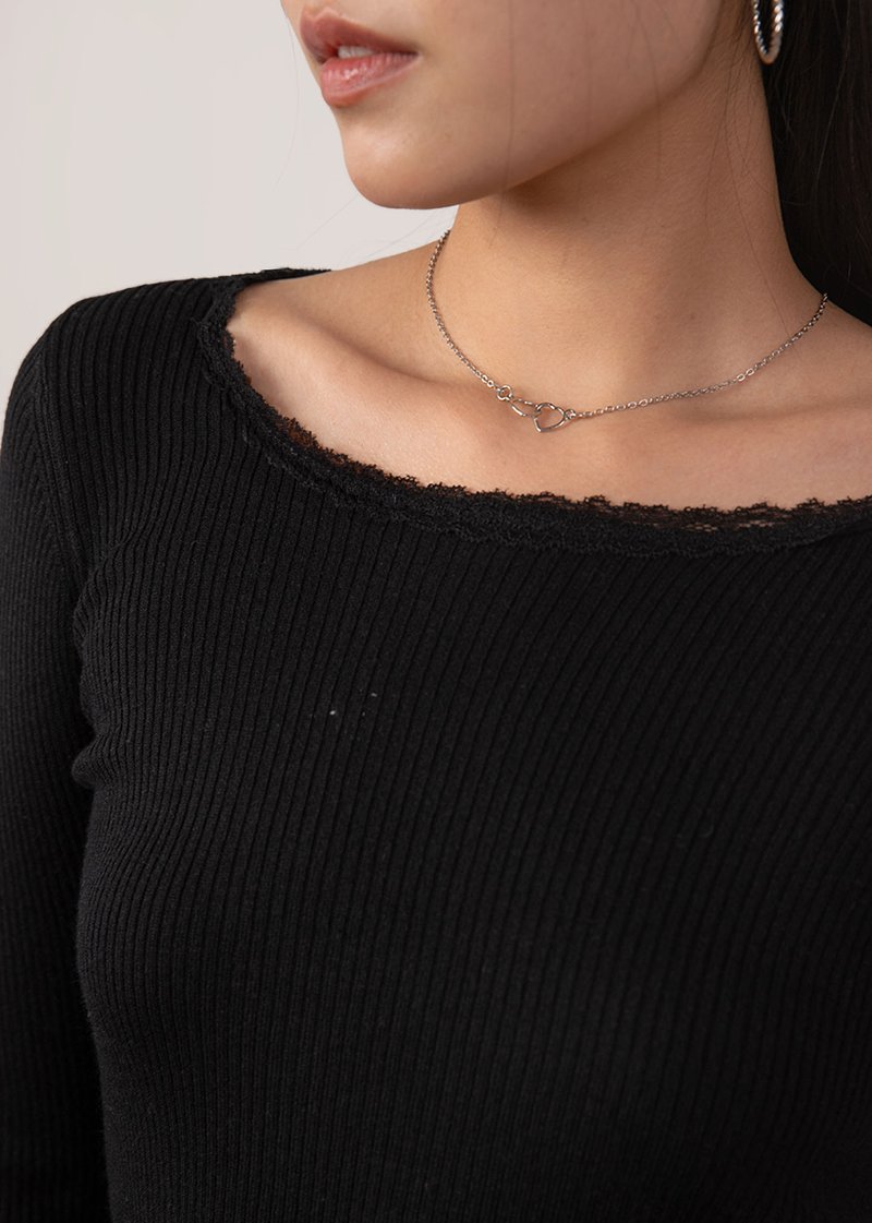 Cleo Lace Trimming Long Sleeve Top in Black