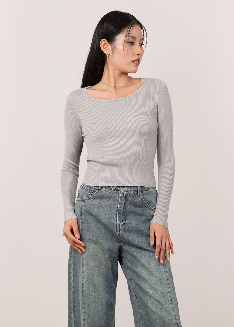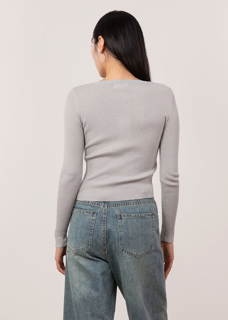 Cleo Lace Trimming Long Sleeve Top in Cloud Grey