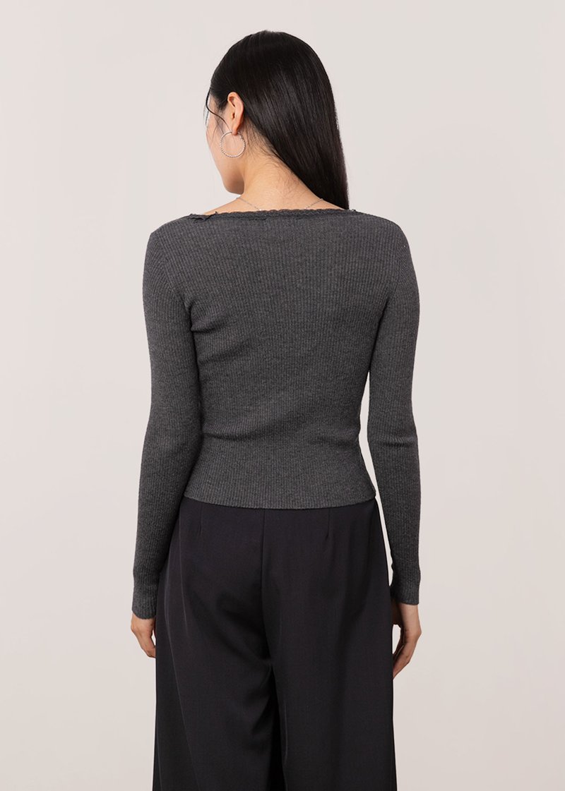Cleo Lace Trimming Long Sleeve Top in Graphite Grey