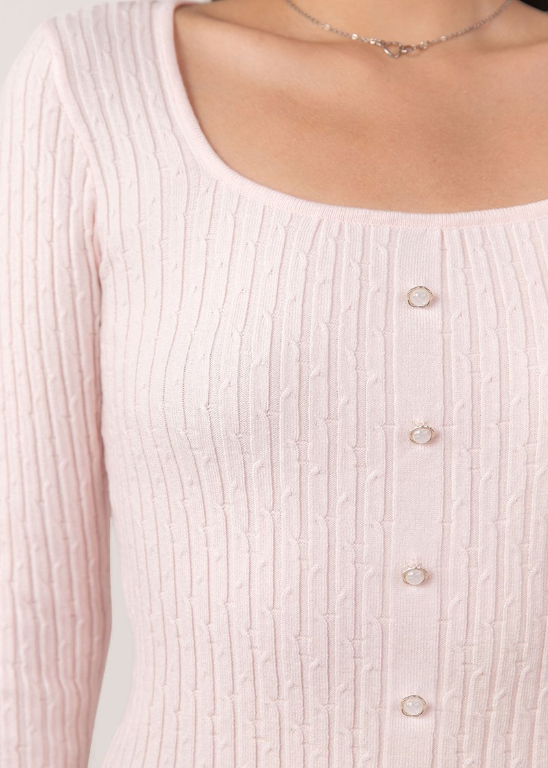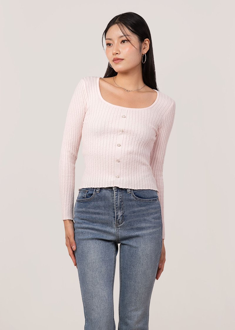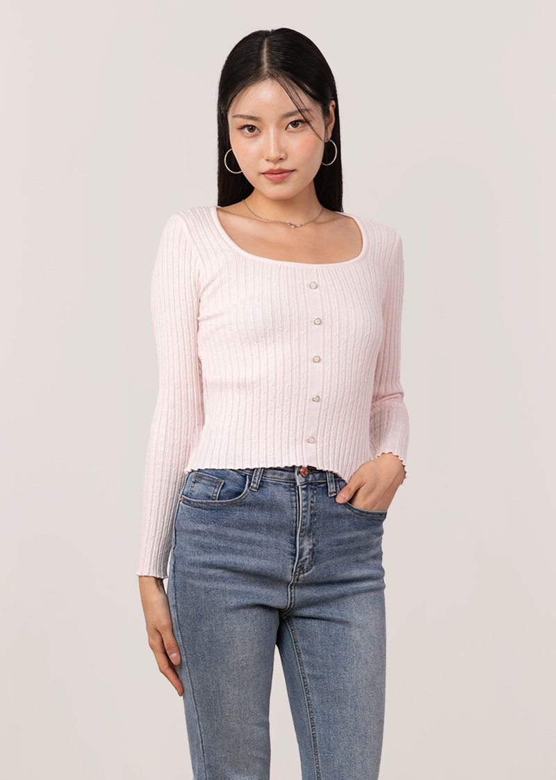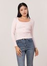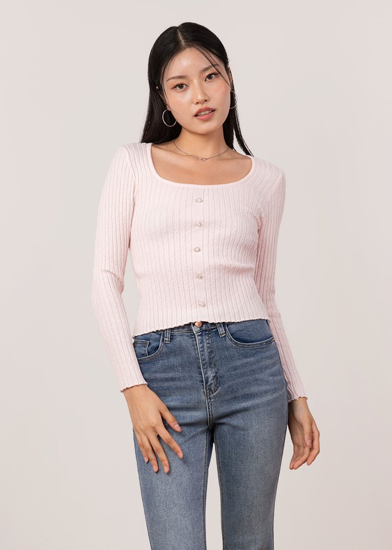 Moonpearl Ribbed Long Sleeve Top in Ice Pink