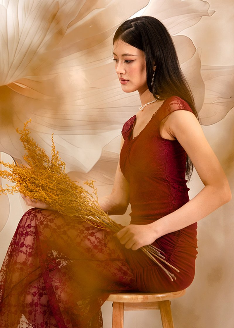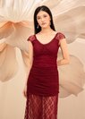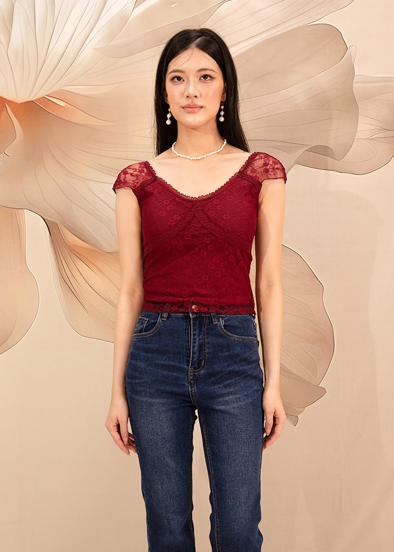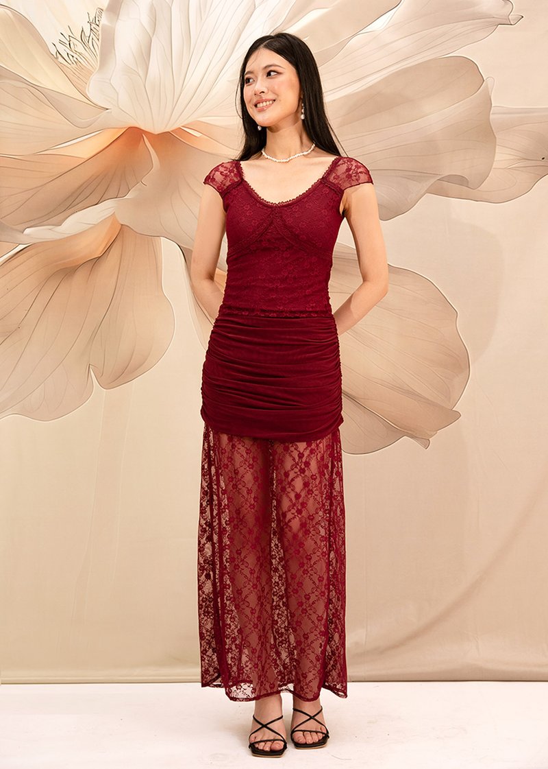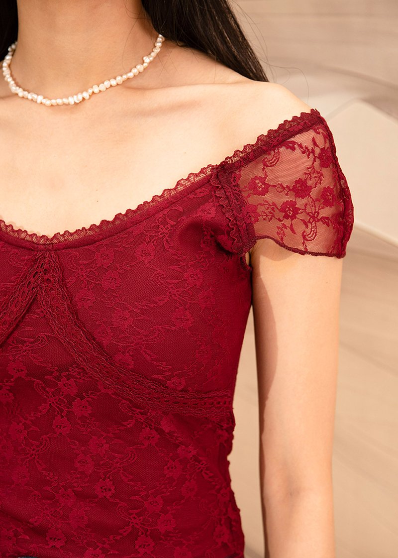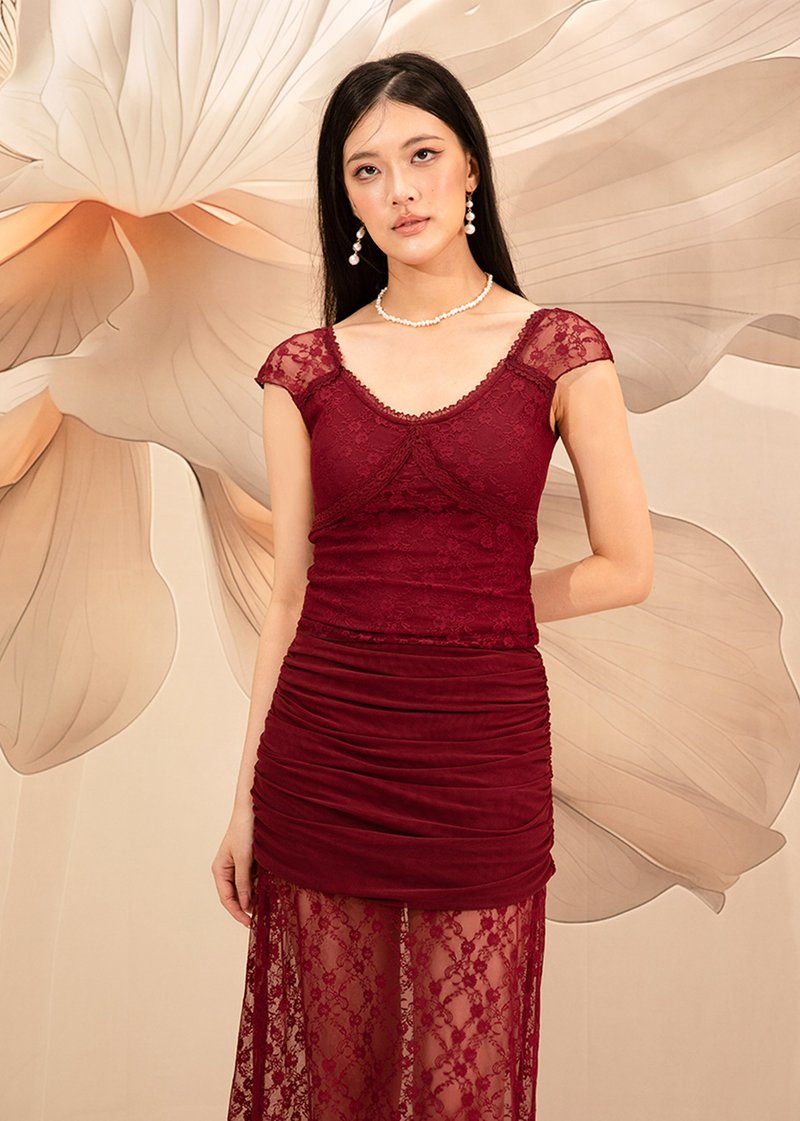 *Features a capped sleeve design with lace prints throughout and lace details around the bust