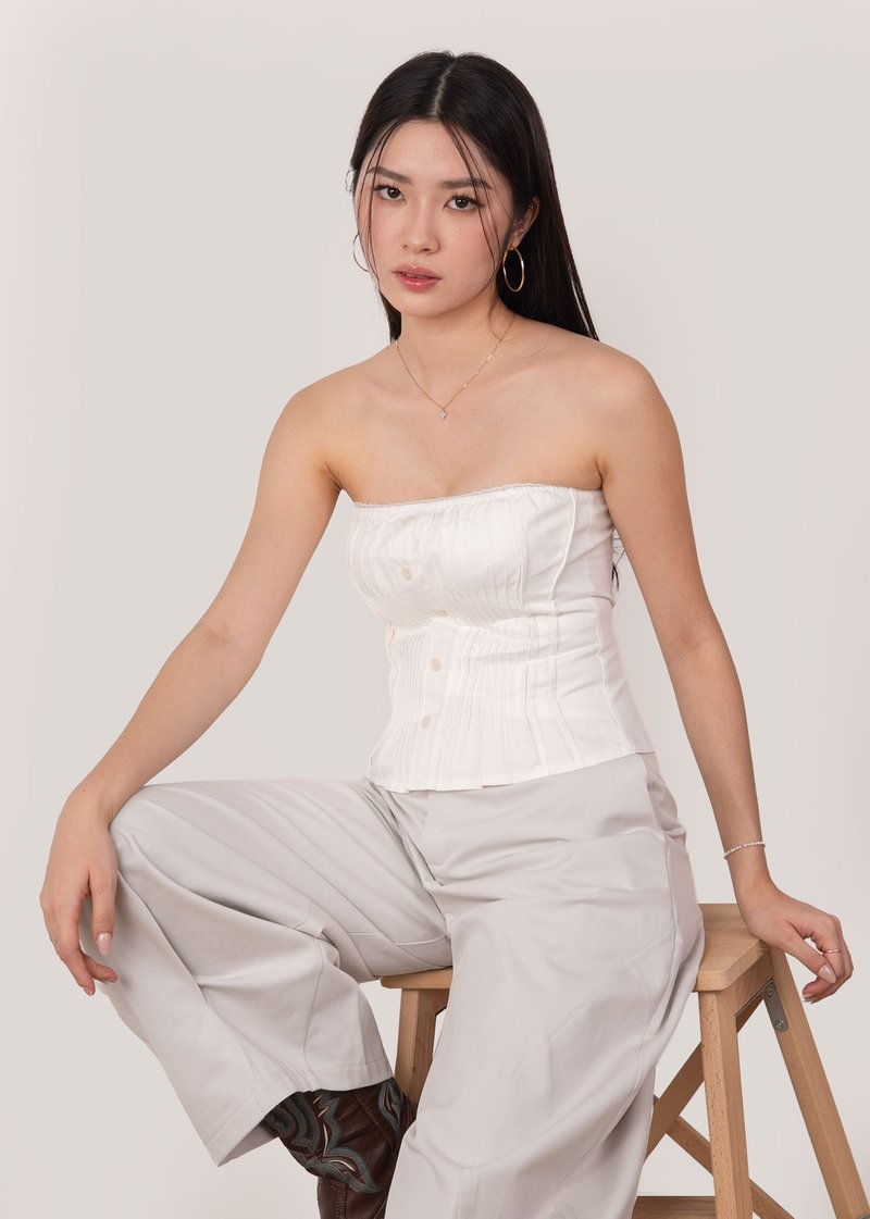Yuna Pleated Top in White