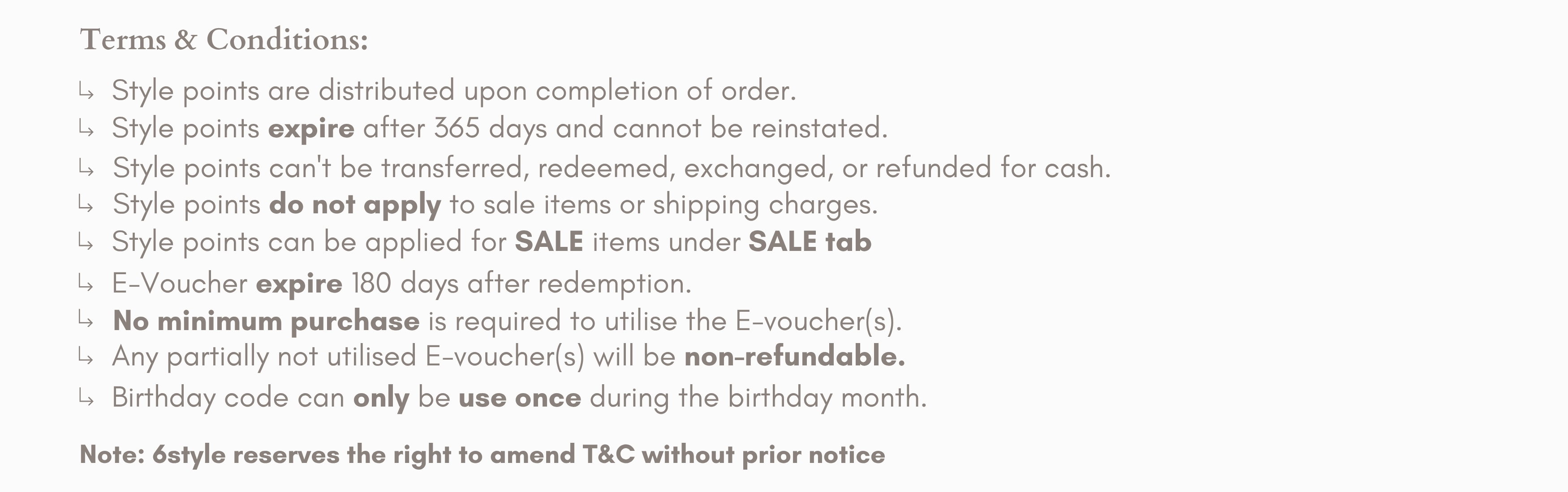 Free shipping on MALAYSIA orders above $100 sgd, REST OF THE WORLD for orders above $200 sgd